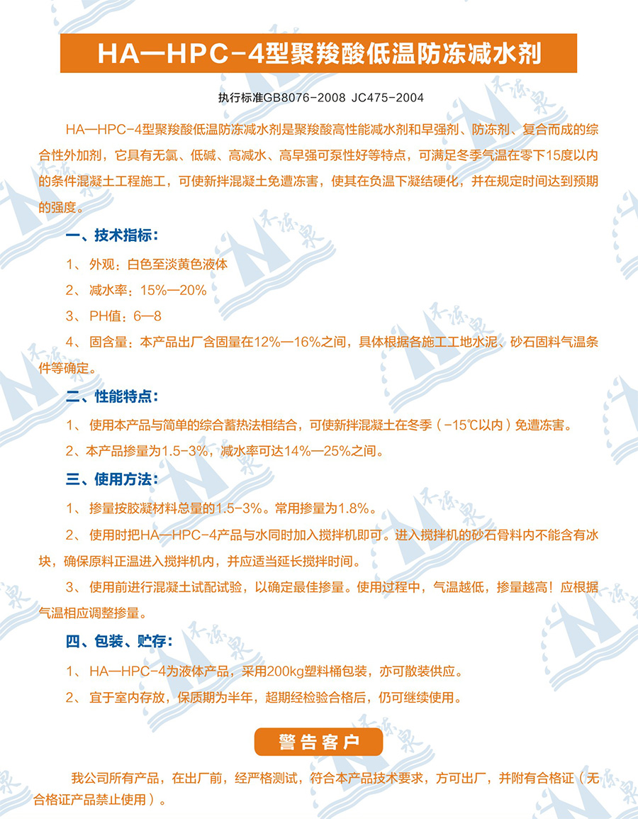 HA-HPC-4型聚羧酸低温防冻减水剂